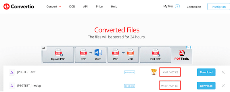 The easiest way to convert images to WebP or AVIF is to use Imagify, which lets you bulk-convert your entire media library to WebP or AVIF with one click. It also applies Smart compression automatically. If you don’t use WordPress, online tools like Convertio are a simple alternative for one-off conversions.