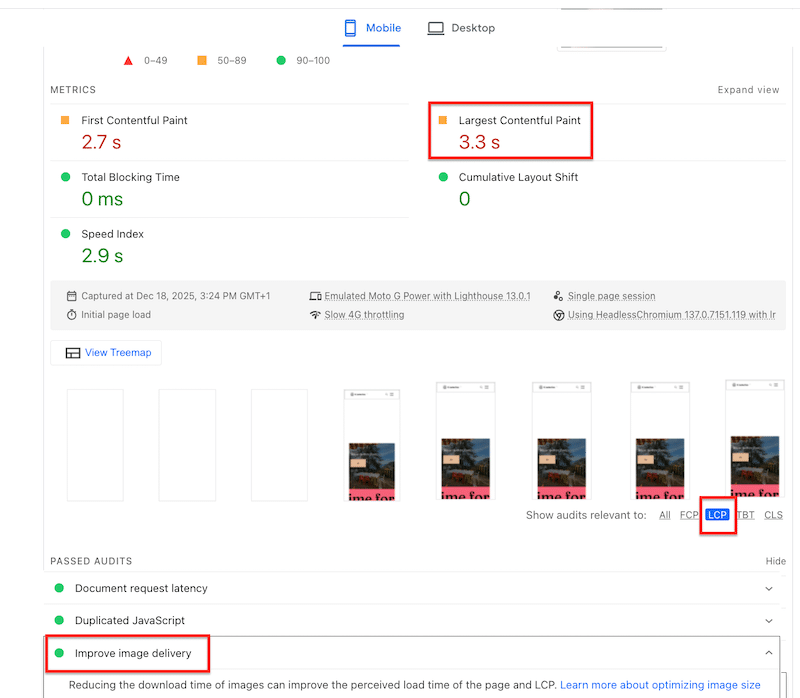 - The image delivery issue flagged by Lighthouse was resolved.