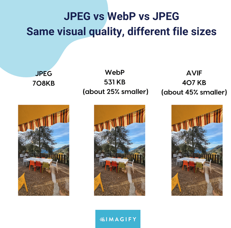 WebP and AVIF use modern compression algorithms that analyze images more cleverly: